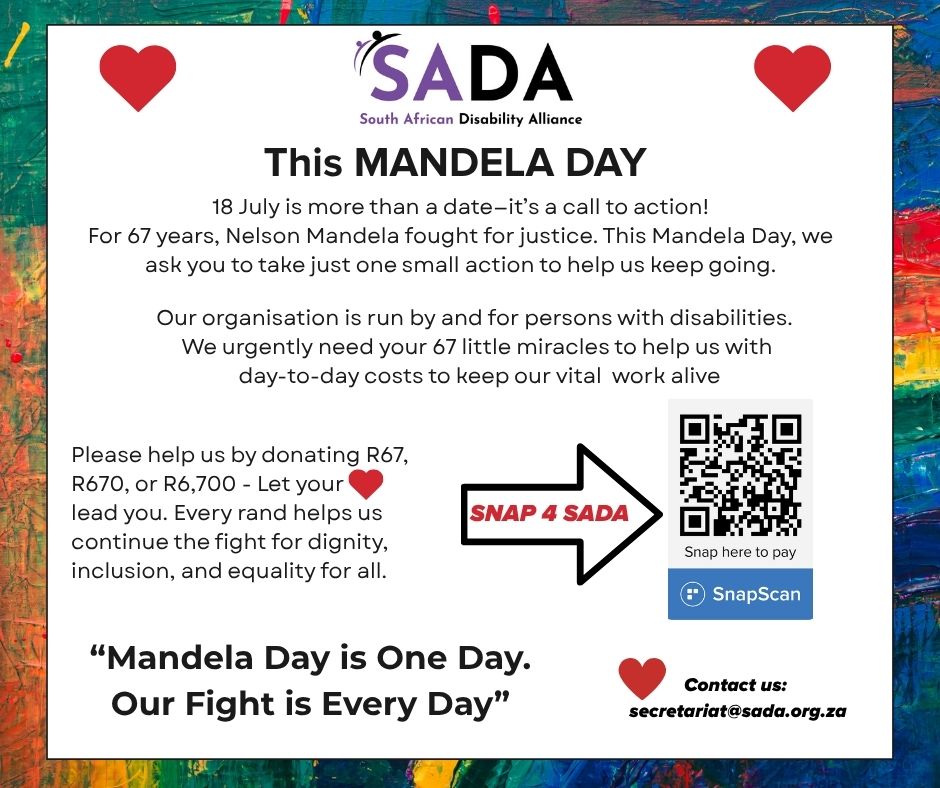 SADA is a voluntary consultative forum of national disability organisations. SADA’s work is aligned with the goal of advancing the rights and freedoms of persons with disabilities in South Africa and the improvement of our quality of life.